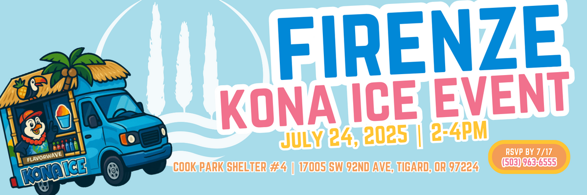 Come cool off and connect with the Firenze Wealth Management team! Enjoy a refreshing Kona Ice treat and bring the whole family for a relaxed afternoon in the park.